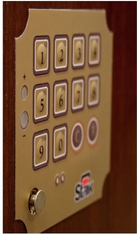 В производстве используется сталь наивысшего качества: трёхмиллиметровые листы для корпуса и пятимиллиметровые – для двери сейфа. Гарантированная прочность запирания достигается за счёт надёжного ригельного механизма, выдвигающего металлические стержни по трём сторонам двери, а также – итальянского электронного замка Stark высокой степени секретности, защищаемого от инструментов взлома специальной пластиной из особо прочного металла.